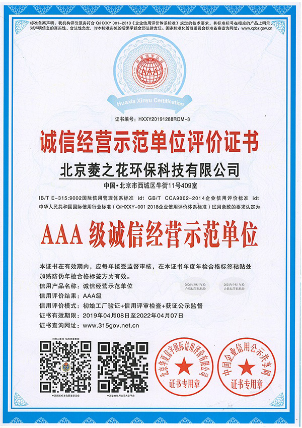 誠信經營示范單位評價證書